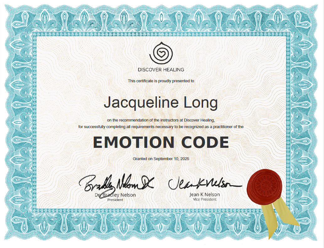 Disclaimer: The Emotion Code® is an energy healing technique created by Dr. Bradley Nelson that aims to identify and release trapped emotional energies from the body, supporting emotional balance, mental clarity, and overall well-being.